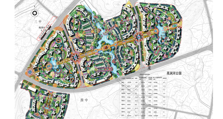 In the premise of not changing the planning road,to hew out a landscape visual corridor in the central position of the land,which passed through the planning road and a central river, will divide the whole area into seven plots finally. The community combined with high-rise buildings, little high-rise buildings and other products, making use of the line of sight along the river road, that the best place to arrange little high-rise buildings, followed by the high-rise buildings,to ensure good views of both sides along the riverfront.