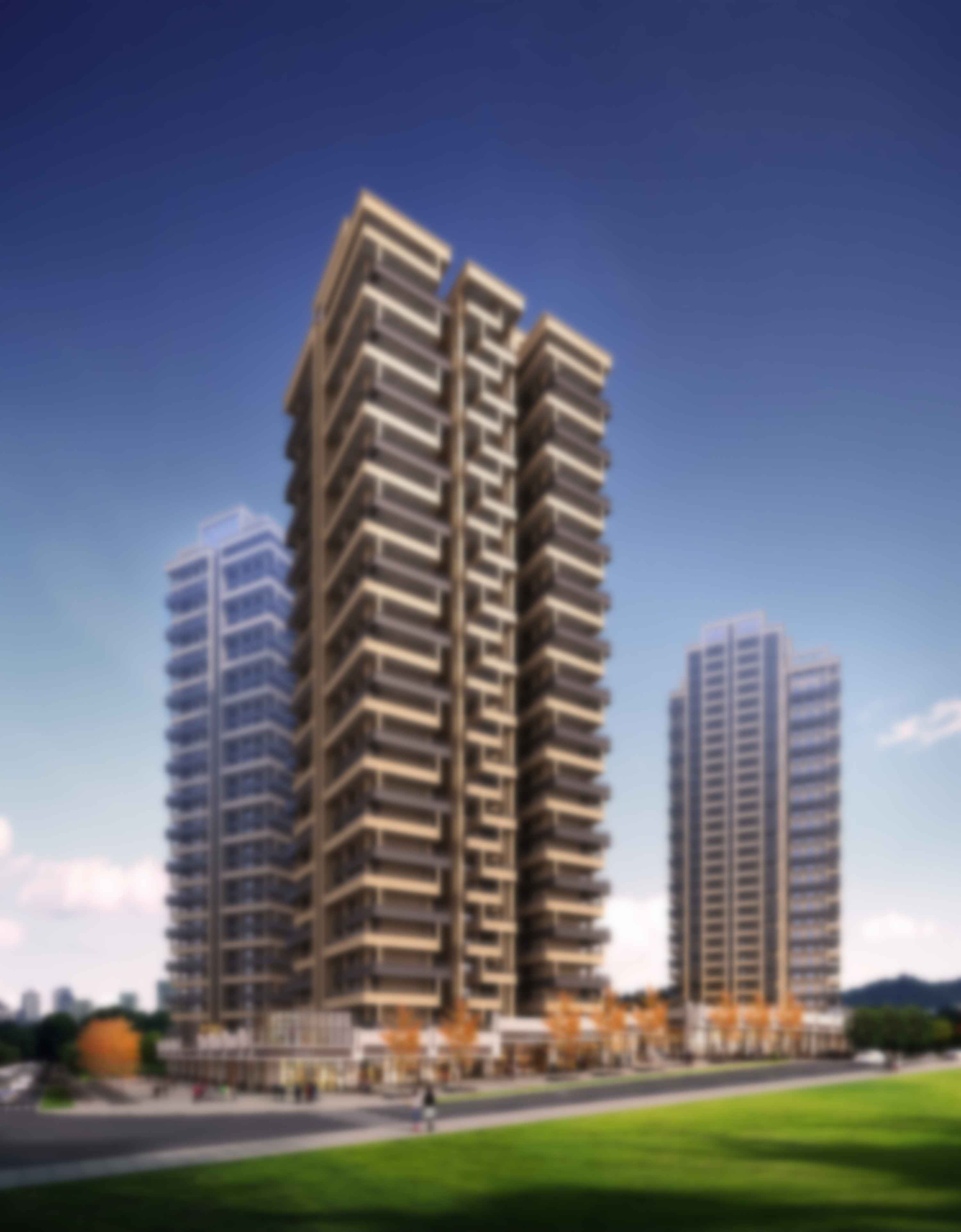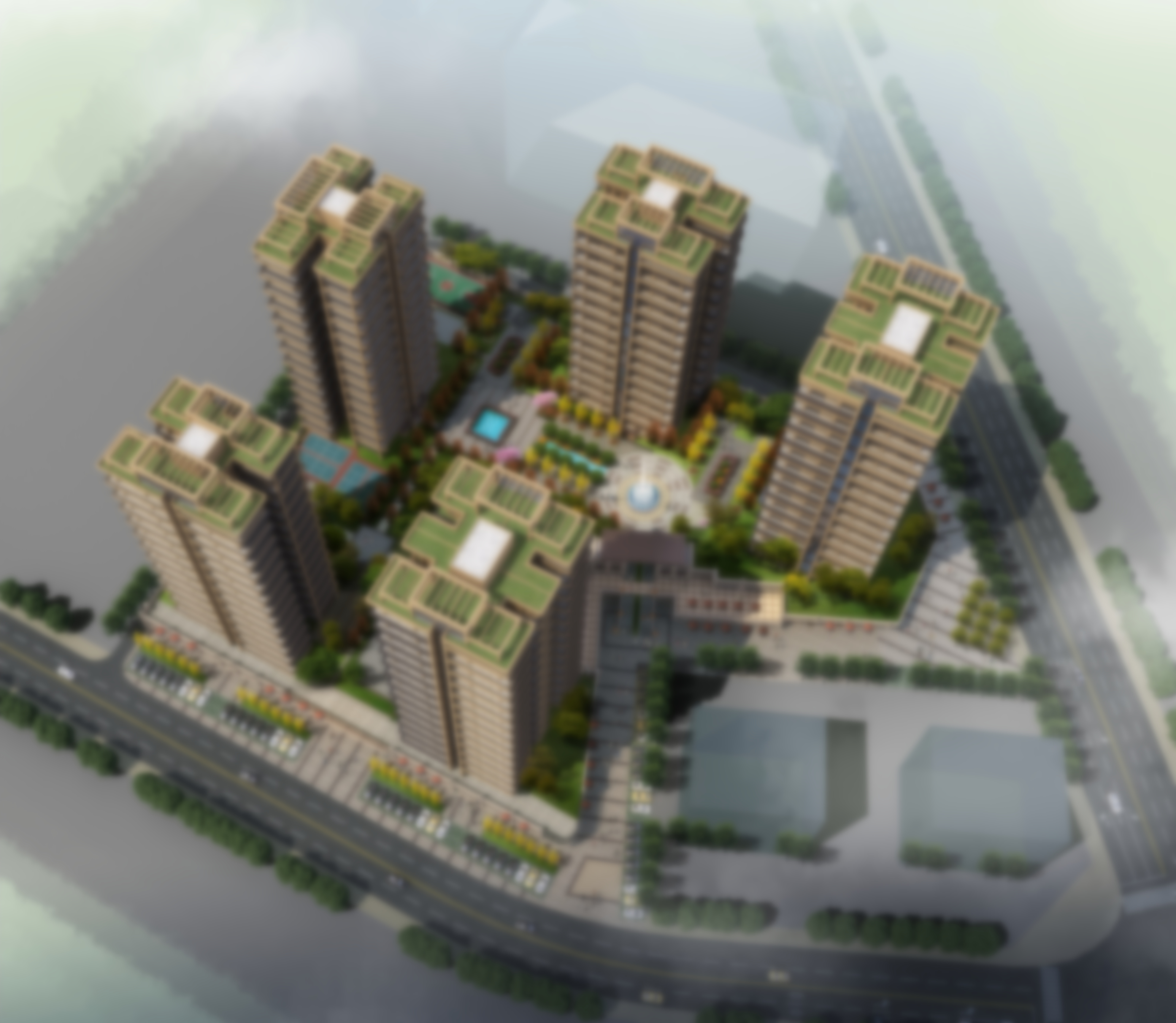 The plan adopts the enclosure layout of the whole high-rise large and middle court,with a total of 4 point-type high-rise buildings designed。The business is arranged in a belt along the road,leaving a larger node of the city square at the main entrance and the back of the building at the intersection of the road,expanding the space of the city road and sidewalk,and providing more leisure space for the citizens。