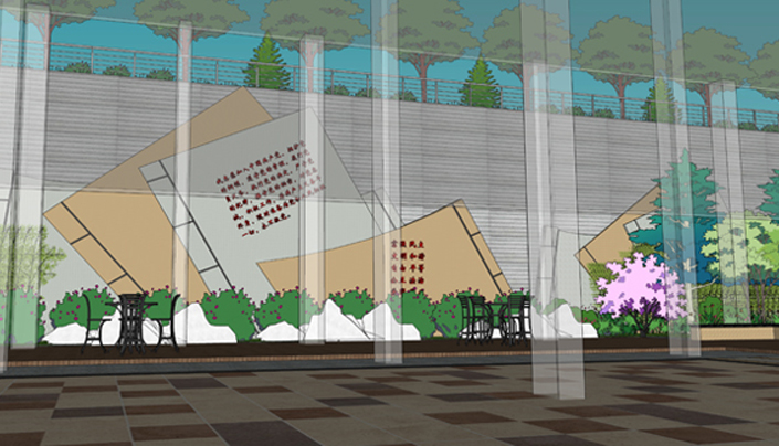 The design through the tree array, lamppost on the line to highlight the gravity of the entire campus. The ground uses the warm tone of the paving and the surrounding green plants to make the entire campus solemn and affinity. Through combine with the four different functional blocks of the courtyard, Square, waterscape, sports ground, mountain and other landscape space, it finaly become a rich, vivid campus environment.