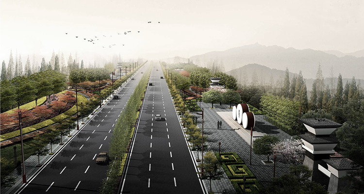 The road engineering that connects the Lian Wan and the city-encircled expressway, lies in Nan Chong city, and the road is divided into two parts with three green belts. It is the emphasis of the renovation project in Nan Chong. The inspiration of the design is history, culture and folk legends of Nan Chong. And we take the following 3 topics,"silk", " source", "jump", to merge with the city transportation, landscape and culture. We take the advantage of plants, facilities, sculptures and so on to show the details of the above 3 topics. The whole landscape satisfies the feeling of pedestrian and people who drive by the combination of plants and square nodes.