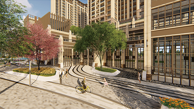 The entire design is consistent with the city's overall plan and the urban layout, architectural style, and landscape pattern of the adjacent section, and is coordinated with the using field current situation, function division, and spatial structure.