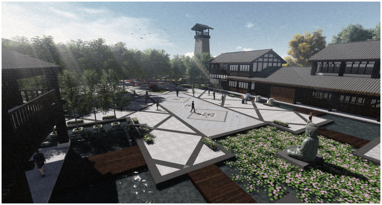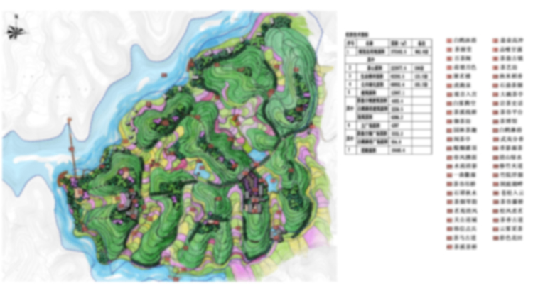 Tea valley is located in the southeast of Tianxian Dong scenic area, the site is surrounded by water on3 sides. The landscape inside is mountain mainly, with scattered water resource. The most of the mountain is covered by tea trees and other plants. There is a primary north-south road and many lanes leading to the mountain. The theme of tea valley is displaying the tea culture, and the function of it is entertainment, leisure, health, cognitive nature, ecological protection to make the citizens relax, play and understand the essence of tea culture. According to the needs of tourists and the construction of the park, the whole valley is divided into 6 parts, that is tea production and processing area, management and office area, tea culture demonstration area, leisure and health area, tea experience area and natural sightseeing tea valley area.