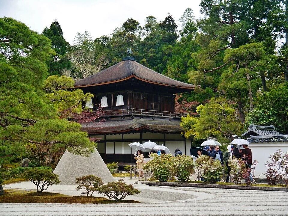幾步之外的銀閣寺同樣展現侘寂之美。雖名喚銀閣,但并不鍍銀,木質結構隨風輕響,石階與砂庭的留白讓人感受到時間的流動。名人攝影師常在此捕捉光影,設計師也常以此為靈感,把“留白”“自然痕跡”“時間感”引入現代建筑。桂離宮和銀閣寺,不僅是文化遺產,也成為全球建筑師和設計愛好者尋找靈感的圣地。